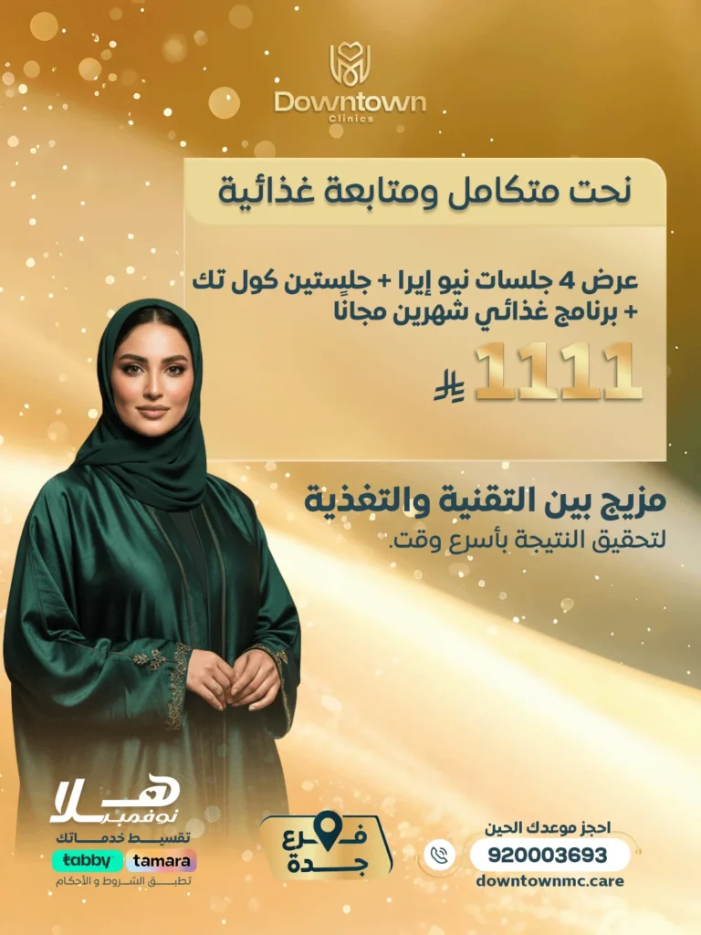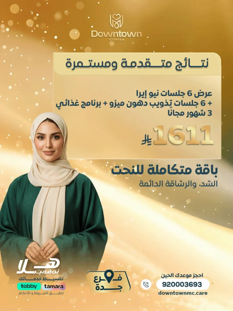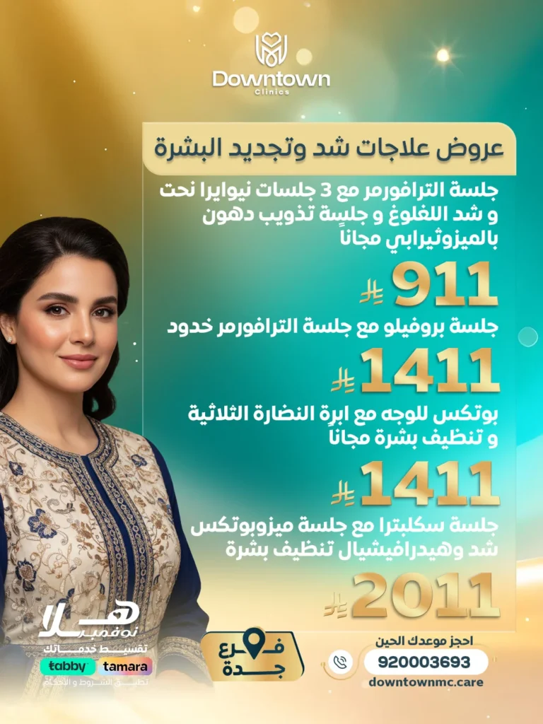 جلسة الترافورمر مع 3 جلسات نيوايرا نحت وشد اللغلوغ وجلسة تذويب دهون بالميزوثيرابي مجانًا 911 ريال